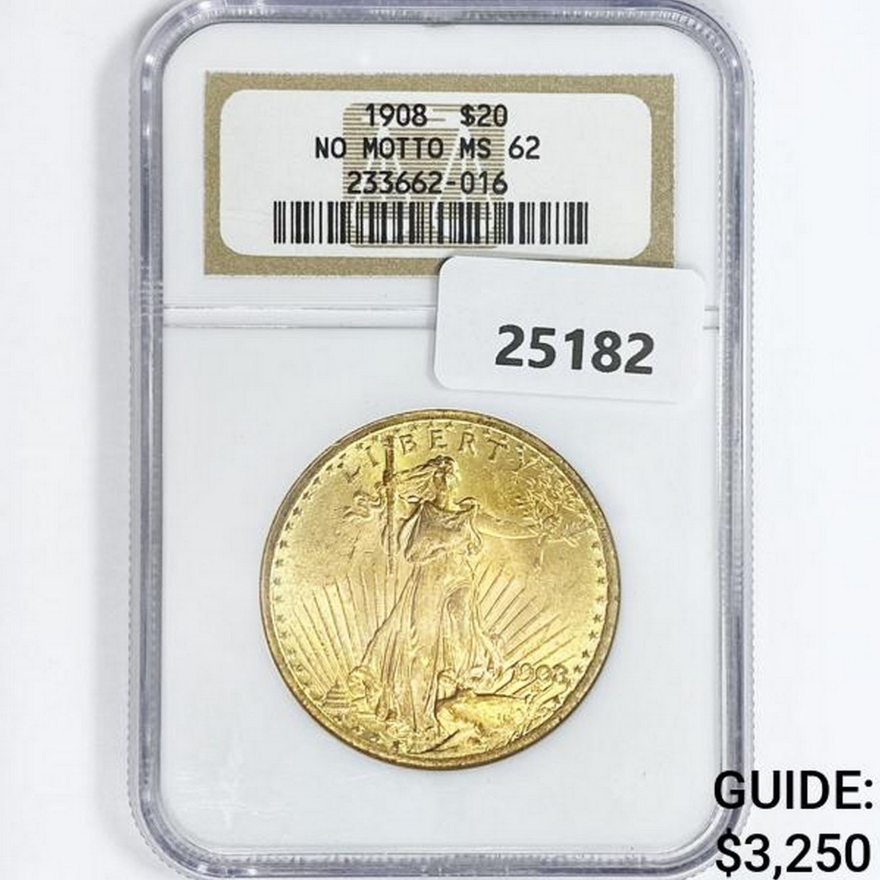 1908 $20 Gold Double Eagle NGC MS62 No Motto