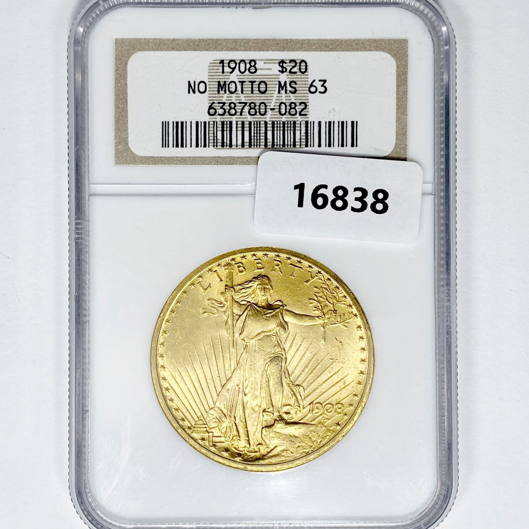 1908 $20 Gold Double Eagle NGC MS63 No Motto