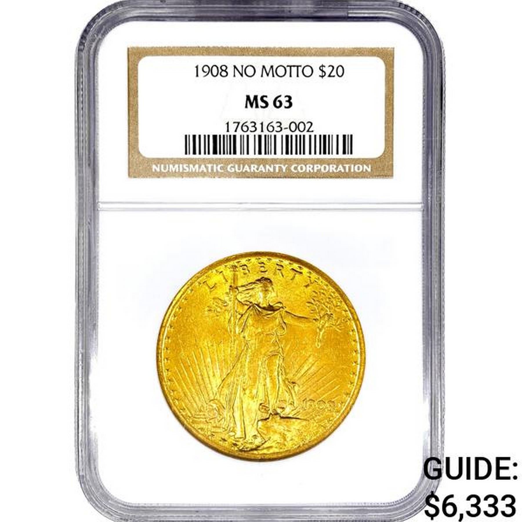 1908 $20 Gold Double Eagle NGC MS63 No Motto