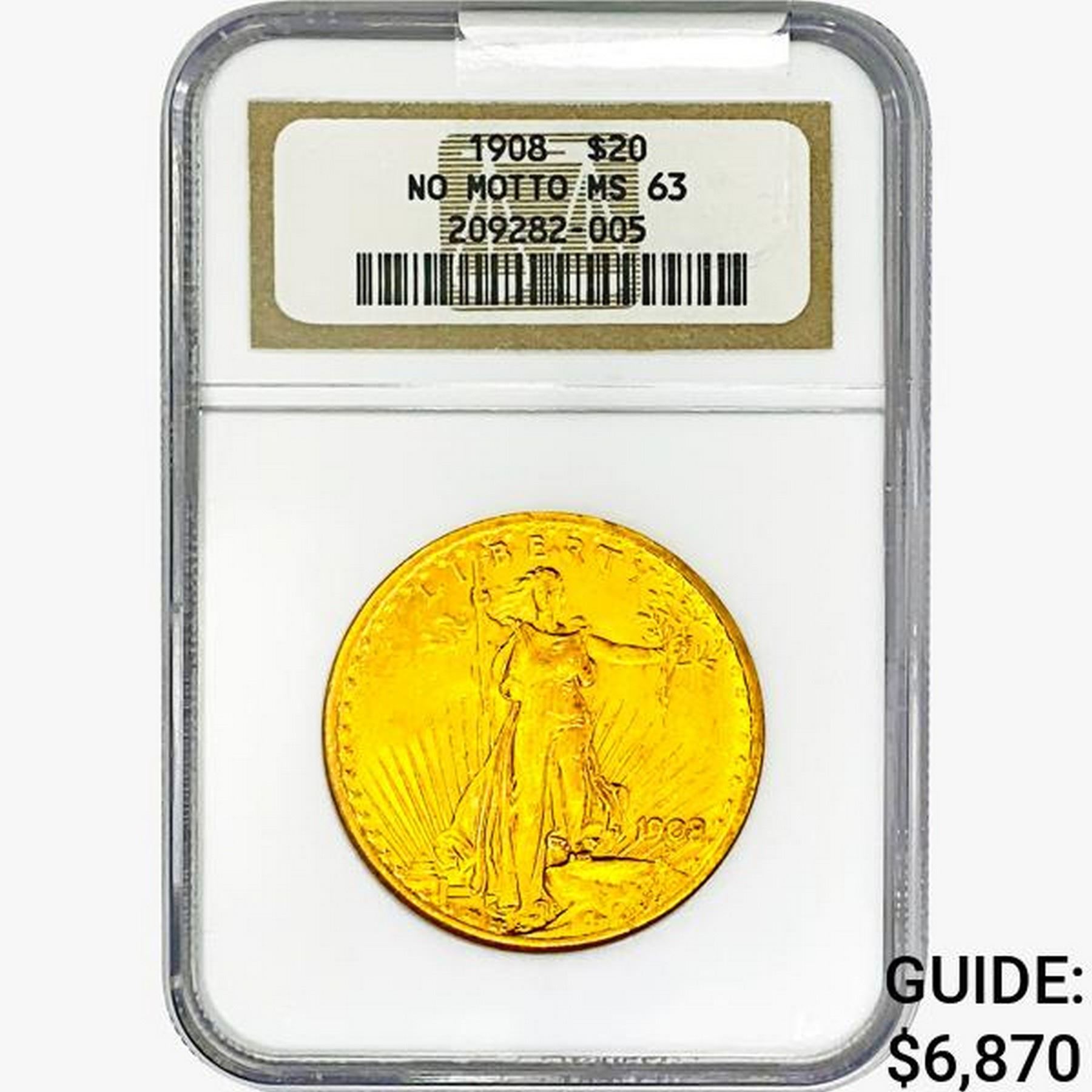 1908 $20 Gold Double Eagle NGC MS63 No Motto