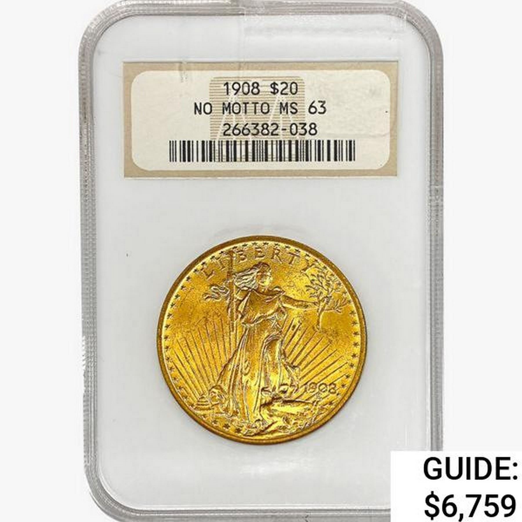 1908 $20 Gold Double Eagle NGC MS63 No Motto