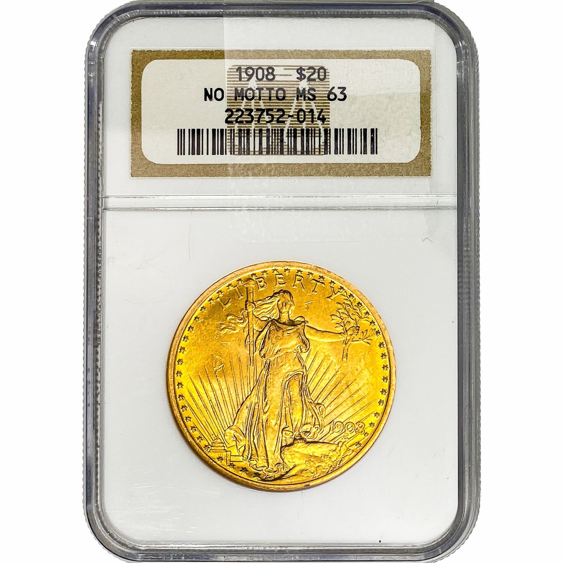 1908 $20 Gold Double Eagle NGC MS63 No Motto