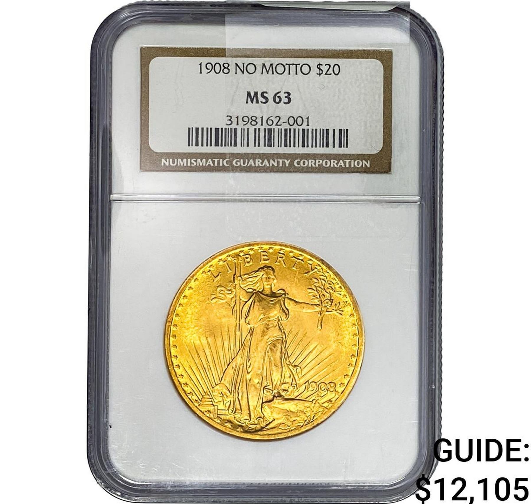 1908 $20 Gold Double Eagle NGC MS63