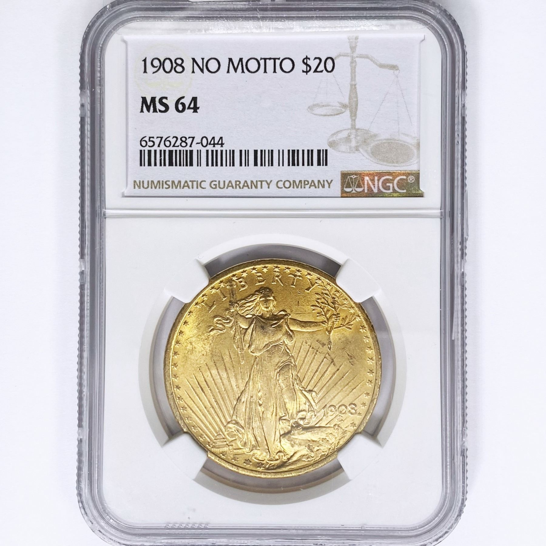 1908 $20 Gold Double Eagle NGC MS64 No Motto