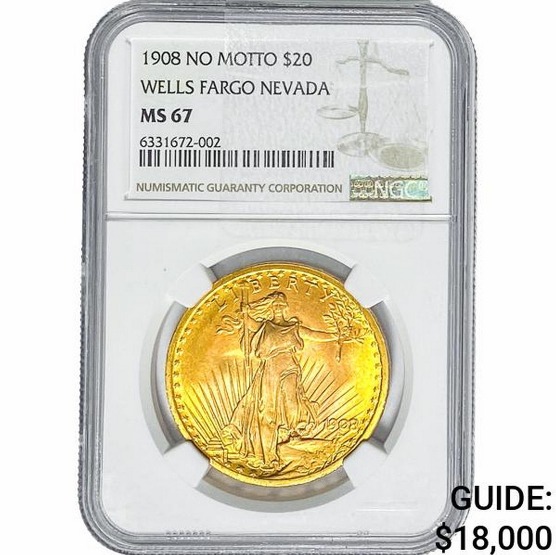 1908 $20 Gold Double Eagle NGC MS67 No Motto