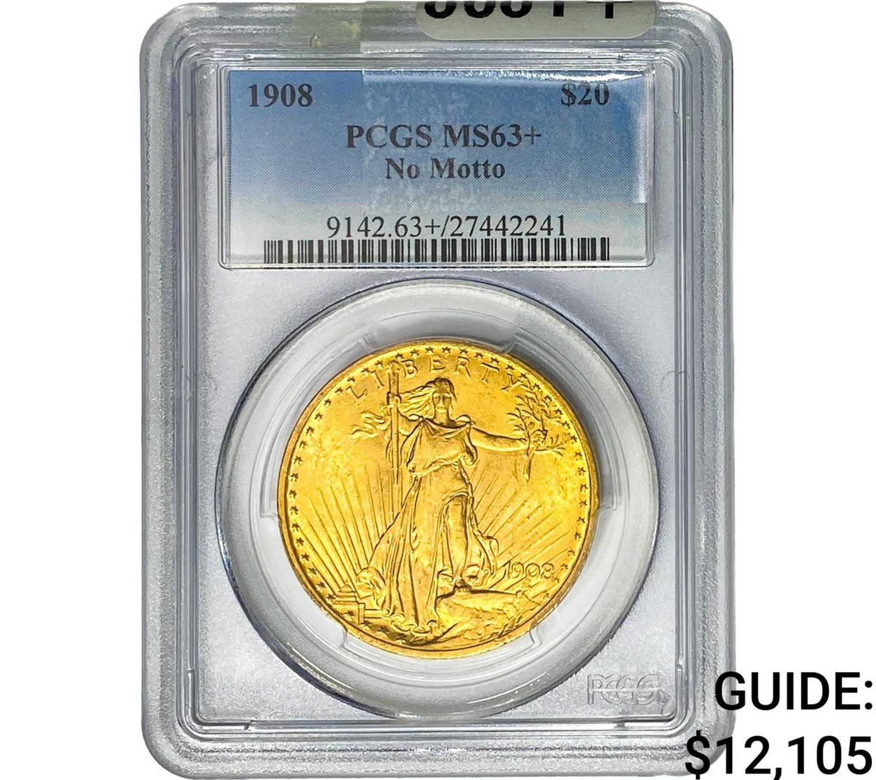 1908 $20 Gold Double Eagle PCGS MS63+ No Motto