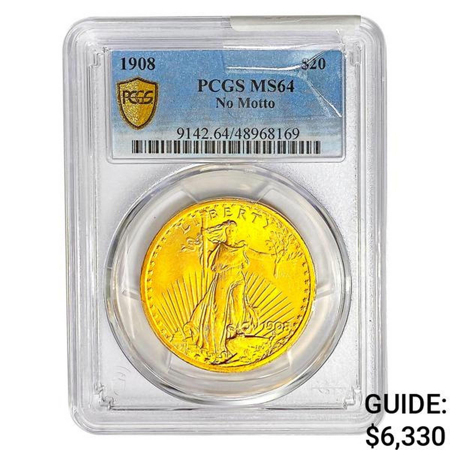 1908 $20 Gold Double Eagle PCGS MS64 No Motto