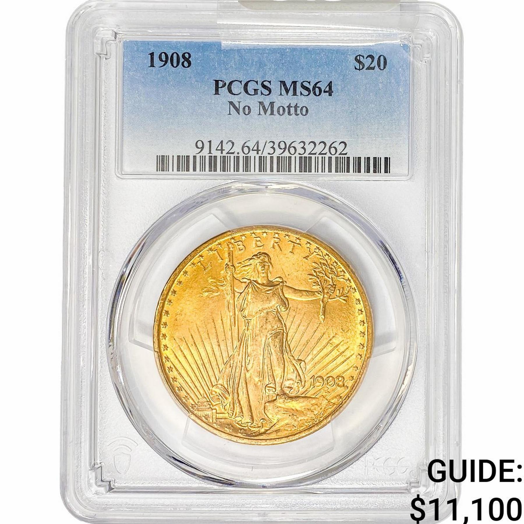 1908 $20 Gold Double Eagle PCGS MS64 No Motto