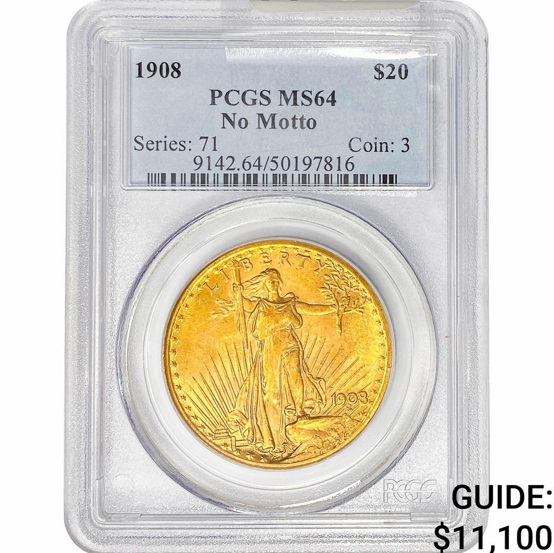 1908 $20 Gold Double Eagle PCGS MS64 No Motto