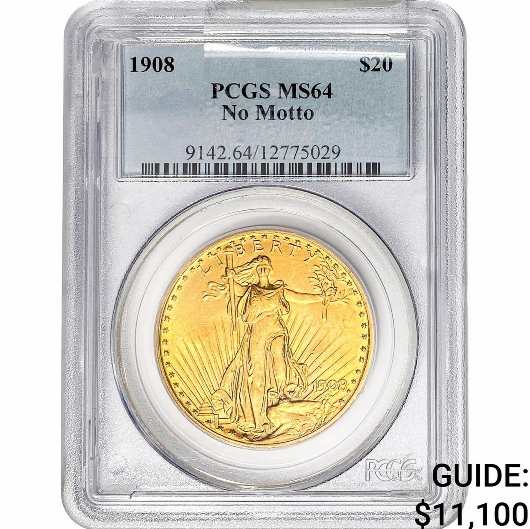 1908 $20 Gold Double Eagle PCGS MS64 No Motto