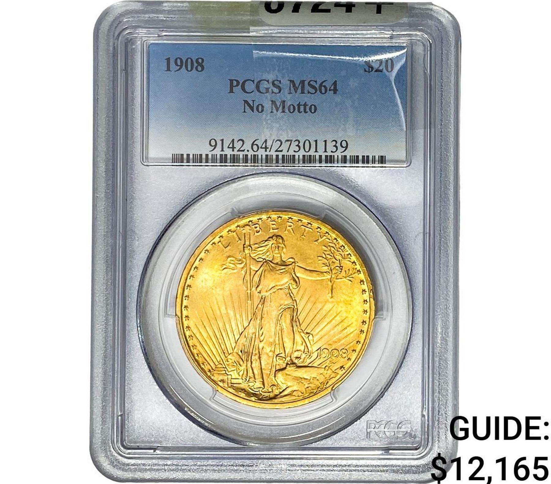 1908 $20 Gold Double Eagle PCGS MS64 No Motto