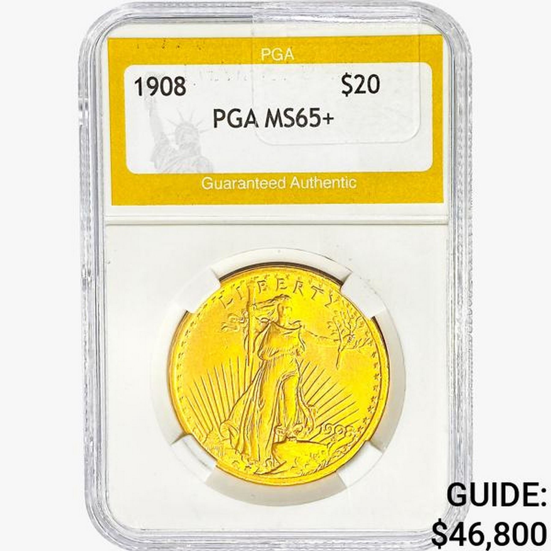 1908 $20 Gold Double Eagle PGA MS65+