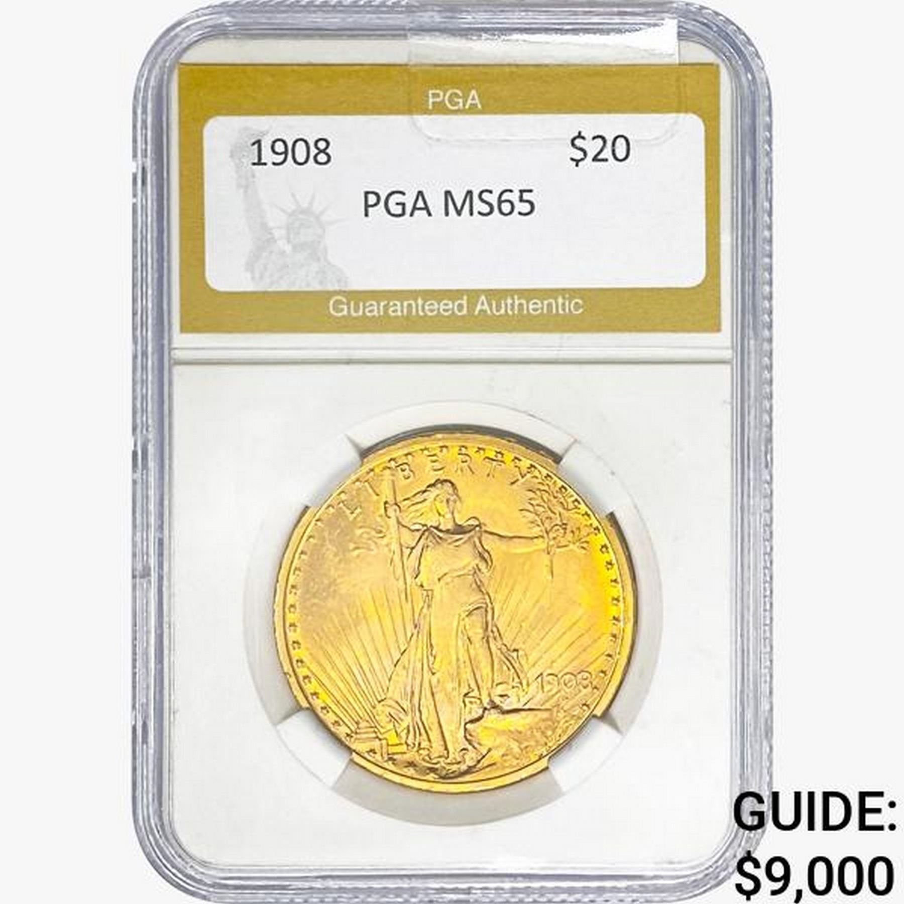 1908 $20 Gold Double Eagle PGA MS65