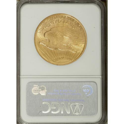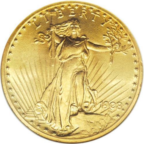 <B>1908 $20 Motto MS64 NGC.</B></I> The motto IN GOD WE TRUST was added to the reverse of the Saint-Gaudens double eagles during 1908, with examples produced of both types. This piece has highly lustrous honey-gold color with exceptional sharpness of the designs. NGC has only certified 22 finer examples of the date (4/07).<BR><BR><b>Shipping:</b> Coins & Currency (<a target="_blank" href="http://www.heritageauctions.com/common/shipping.php">view shipping information</a>)