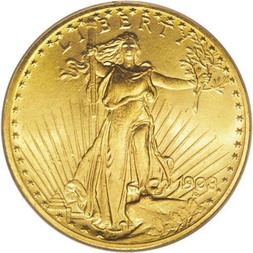 <B>1908 $20 Motto MS64 PCGS.</B></I> Booming luster enlivens this attractively preserved and sharply struck near-Gem. Philadelphia struck millions of double eagles in 1908, but only a tiny fraction of this production bore the Motto, which was unobtrusively placed above the (presumably) rising sun.<BR><BR><b>Shipping:</b> Coins & Currency (<a target="_blank" href="http://www.heritageauctions.com/common/shipping.php">view shipping information</a>)