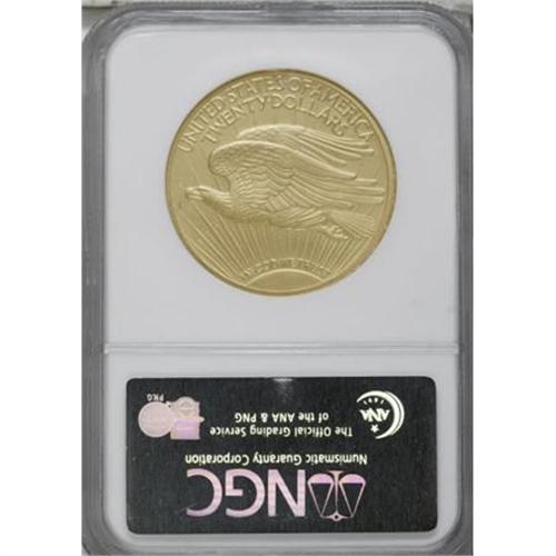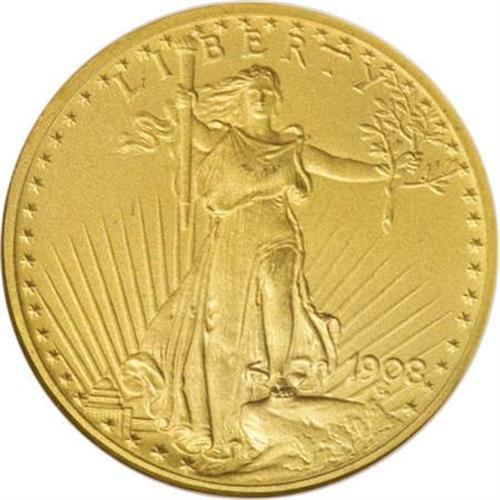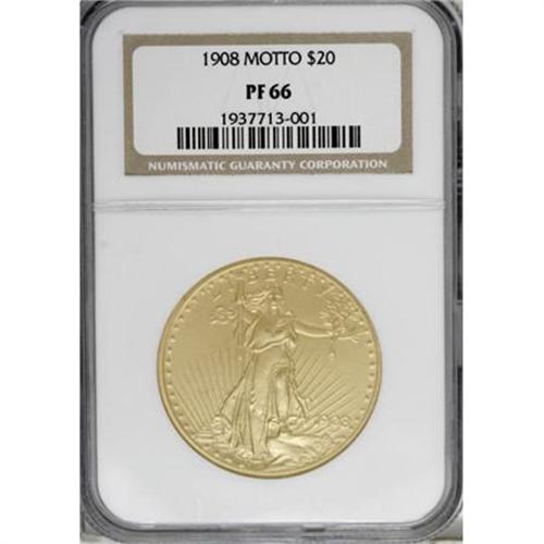 <B>1908 $20 Motto PR66 NGC.</B></I> The end of matte proof coinage in 1916 was present in its inception in 1908. Collectors were unfamiliar with the new matte proofing process and became increasingly dissatisfied as the years went on, in spite of the Mint's efforts to appease collectors. Philadelphia Mint Superintendent Adam Joyce wrote in 1916 to the director:<BR><BR> " ... great dissatisfaction has been shown by persons desiring these proofs and a seemingly unnecessary amount of correspondence entailed on this office, returning orders and answering complaints.<BR> "In order to distinguish gold proofs from the regular issue, it has been necessary to give them a sandblast finish, which changes the appearance of the coins to such an extent that it is almost impossible to put them in circulation. This is something I am not sure we have the right to do."<BR><BR> This altered appearance of matte proof gold, coupled with losing money on the production of proof silver and minor coins, finally stopped proof production on October 18. (This information is courtesy of Roger Burdette in the September 24, 2007 issue of <I>Coin World </B></I>in an article titled "Endings and Beginnings of 20th Century Proofs.")<BR> In the beginning, however, a relatively large number of proof twenties were produced with a net mintage of 101 pieces in 1908. Probably between 45 and 60 examples remain today in all grades, most of which are not as well preserved as this piece. The coarse-grained matte finish shows the usual rich khaki-green color. The only mentionable (but not readily noticeable) surface imperfection is a slight shiny spot in the field to the left of the eagle's beak. An outstanding proof twenty from this first year of production and also the first year the Saint-Gaudens design was available in proof format. Census: 26 in 66, 11 finer (1/08).<BR><I>From The Southwest Collection.</B></I><BR><BR><B>Coin Engraver:</B> Augustus Saint-Gaudens<BR><BR><b>Shipping:</b> Coins & Currency (<a target="_blank" href="http://www.heritageauctions.com/common/shipping.php">view shipping information</a>)