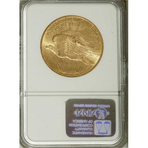<B>1908 $20 No Motto MS63 NGC.</B></I> NGC Census: (37265/39648). PCGS Population (26448/37596). Mintage: 4,271,551. Numismedia Wsl. Price for NGC/PCGS coin in MS63: $795. (#9142)<BR><BR><B>Coin Engraver:</B> Augustus Saint-Gaudens<BR><BR><b>Shipping:</b> Coins & Currency (<a target="_blank" href="http://www.heritageauctions.com/common/shipping.php">view shipping information</a>)