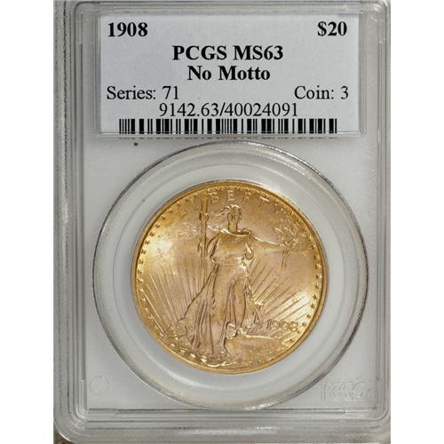 1908 $20 No Motto MS63 PCGS. PCGS Population (2612