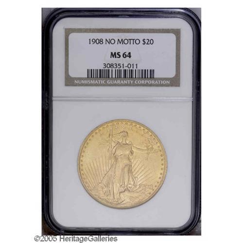 1908 $20 No Motto MS64 NGC. Even though the No Motto 1 1908[$20] No Motto MS64 NGC.
