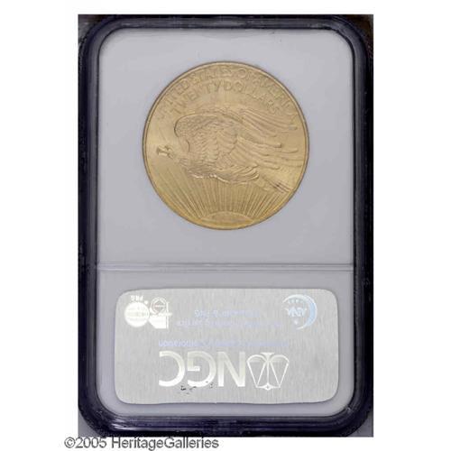<B>1908<$20> No Motto MS64 NGC.</B></I> Even though the No Motto 1908 is a common coin, it is still a two-year type, and only a slight increase in demand could cause the availability of these pieces to dry up quickly. A strong strike, minimal abrasions, and deep, frosty luster all complement this very attractive specimen. An excellent, high end type coin.<BR><I>From The Henry R. Luhrs Collection.</B></I>