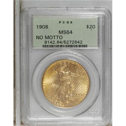 1908 $20 No Motto MS64 PCGS. PCGS Population (2256