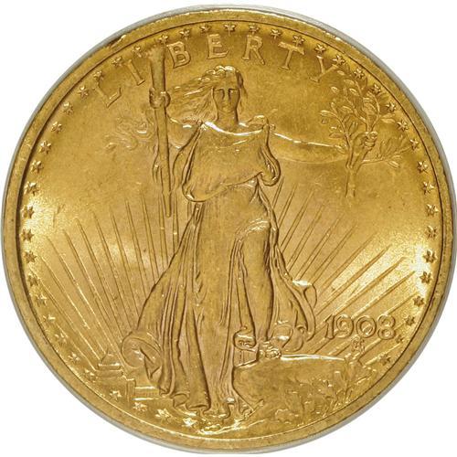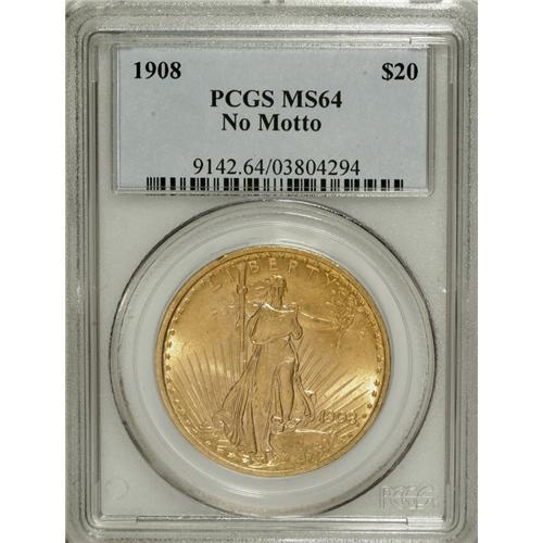 1908 $20 No Motto MS64 PCGS. PCGS Population (22579/12