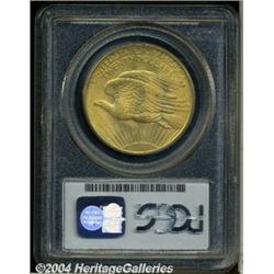 <B>1908<$20> No Motto MS64 PCGS.</B></I> Pumpkin-gold coloration bathes each side of this nicely struck double eagle. A moderate abrasion is noted near Liberty's left breast, and a couple of smaller ones are concealed within the eagle's wing feathers. <BR><BR><B>Important notice:</B> Heritage usually auctions material at the rate of 200-250 lots per hour. On some occasions eBay Live bid software or the Internet may not be able to keep up with the pace of the auction. We recommend placing a realistic absentee bid now as insurance to avoid disappointment. Occasionally the auctioneer may eliminate or reject an eBay Live bid, and the auctioneer may also reopen a lot after the close of the eBay live bidding (usually because we missed an audience bid), and may reject your bid even if it shows you as the winning bidder. By bidding via eBay Live, you agree that Heritage may award the lot to another bidder at its sole discretion under the circumstances described above or any other reasonable circumstances. Since eBay bids are not shown to us until we open the lot on the floor, we treat those bids just like floor bids. In most cases the floor responds before the eBay bid is presented to us, due to Internet lag time, so for consistency we have made it a policy that floor bids are always considered first over tie eBay live bids. Also please note that all Heritage lots purchased through eBay Live carry a 20% Buyer's Premium. Please make sure you read the Terms and Conditions before you bid. </span></font></tr></table></td></tr></table>
