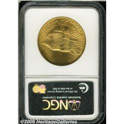 <B>1908 $20 No Motto MS65 NGC.</B></I> An impressive type coin, sharply struck and fully lustrous with light honey color and pleasing surfaces.