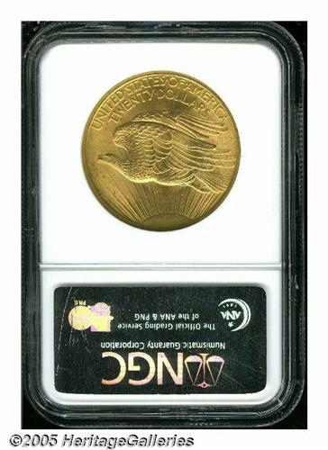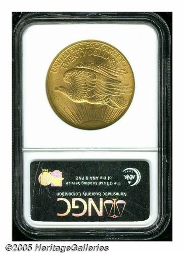 <B>1908<$20> No Motto MS65 NGC.</B></I> Slightly matte-golden example, possessed of a good strike and good eye appeal.