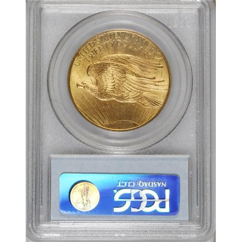 1908 $20 No Motto MS65 PCGS. Long Rays Obverse, which