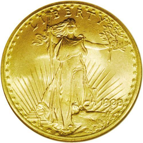 <B>1908<$20> No Motto MS66 NGC.</B></I> Ex: Wells Fargo. Essentially flawless surfaces and beaming luster enhance this superb Premium Gem type coin. Even under a loupe, the only mentionable abrasion is a single hit in the right field near Liberty's head. Robustly struck and with beautiful straw-gold coloration. <BR><BR><B>Important notice:</B> Heritage usually auctions material at the rate of 200-250 lots per hour. On some occasions eBay Live bid software or the Internet may not be able to keep up with the pace of the auction. We recommend placing a realistic absentee bid now as insurance to avoid disappointment. Occasionally the auctioneer may eliminate or reject an eBay Live bid, and the auctioneer may also reopen a lot after the close of the eBay live bidding (usually because we missed an audience bid), and may reject your bid even if it shows you as the winning bidder. By bidding via eBay Live, you agree that Heritage may award the lot to another bidder at its sole discretion under the circumstances described above or any other reasonable circumstances. Since eBay bids are not shown to us until we open the lot on the floor, we treat those bids just like floor bids. In most cases the floor responds before the eBay bid is presented to us, due to Internet lag time, so for consistency we have made it a policy that floor bids are always considered first over tie eBay live bids. Also please note that all Heritage lots purchased through eBay Live carry a 20% Buyer's Premium. Please make sure you read the Terms and Conditions before you bid. This lot is being auctioned in conjunction with a live floor auction by Heritage Galleries & Auctioneers. All final auction and invoice information will be supplied by Heritage Galleries & Auctioneers, and all other information should be considered preliminary. Lot:4551 <BR><BR><B>Winning Notification and Billing:</B> After the FINAL session in this auction is complete, Heritage will send e-mail and snail mail invoices. This process normally takes several days. All final auction and invoice information will be supplied by Heritage Galleries & Auctioneers, and all other information should be considered preliminary. <BR><BR>This auction will be conducted on a live auction floor and over the Internet through eBay Live. If you choose to place an absentee bid, please take a moment to <font color='#0000ff'><u><a href='http://pages.ebay.com/liveauctions/help/before/laabsentee.html'>learn how eBay Live absentee bidding works</a></u></font><font color='#000000'>