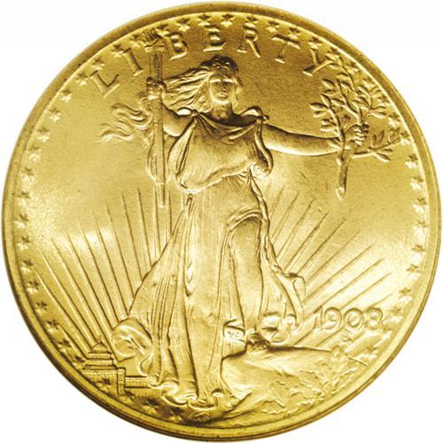<B>1908<$20> No Motto MS67 NGC.</B></I> For the type collector, this issue is an ideal candidate, as examples are plentiful in all grades including Superb Gem. This eye appealing example is sharply struck with lovely orange-gold color and frosty luster. A few microscopic abrasions are present, but none are immediately discernible without magnification. <BR><BR><B>Important notice:</B> Heritage usually auctions material at the rate of 200-250 lots per hour. On some occasions eBay Live bid software or the Internet may not be able to keep up with the pace of the auction. We recommend placing a realistic absentee bid now as insurance to avoid disappointment. Occasionally the auctioneer may eliminate or reject an eBay Live bid, and the auctioneer may also reopen a lot after the close of the eBay live bidding (usually because we missed an audience bid), and may reject your bid even if it shows you as the winning bidder. By bidding via eBay Live, you agree that Heritage may award the lot to another bidder at its sole discretion under the circumstances described above or any other reasonable circumstances. Since eBay bids are not shown to us until we open the lot on the floor, we treat those bids just like floor bids. In most cases the floor responds before the eBay bid is presented to us, due to Internet lag time, so for consistency we have made it a policy that floor bids are always considered first over tie eBay live bids. Also please note that all Heritage lots purchased through eBay Live carry a 20% Buyer's Premium. Please make sure you read the Terms and Conditions before you bid. This lot is being auctioned in conjunction with a live floor auction by Heritage Galleries & Auctioneers. All final auction and invoice information will be supplied by Heritage Galleries & Auctioneers, and all other information should be considered preliminary. Lot:4552 <BR><BR><B>Winning Notification and Billing:</B> After the FINAL session in this auction is complete, Heritage will send e-mail and snail mail invoices. This process normally takes several days. All final auction and invoice information will be supplied by Heritage Galleries & Auctioneers, and all other information should be considered preliminary. <BR><BR>This auction will be conducted on a live auction floor and over the Internet through eBay Live. If you choose to place an absentee bid, please take a moment to <font color='#0000ff'><u><a href='http://pages.ebay.com/liveauctions/help/before/laabsentee.html'>learn how eBay Live absentee bidding works</a></u></font><font color='#000000'>
