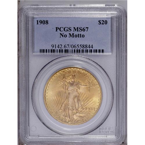 1908 $20 No Motto MS67 PCGS. In terms of sheer eye app 1908[$20] No Motto MS67 PCGS.