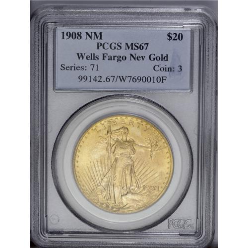 1908 $20 No Motto, Wells Fargo MS67 PCGS. Depending on