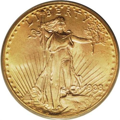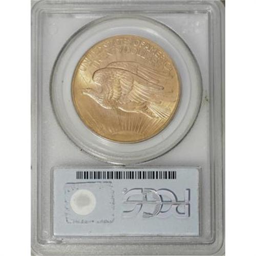 <B>1908 $20 No Motto, Wells Fargo Nevada MS67 PCGS.</B></I> Short Rays Obverse. This Superb Gem continues the remarkable quality of the Wells Fargo hoard of 1908 No Motto twenties. The obverse is virtually pristine, and the reverse is clean aside from a couple of inconsequential ticks on the eagle. Sharply struck with creamy luster. An interesting mint-made strike-through affects the left half of the olive branch.<BR><I>From The Carlton Woods Collection.</B></I><BR><BR><B>Coin Engraver:</B> Augustus Saint-Gaudens<BR><BR><b>Shipping:</b> Coins & Currency (<a target="_blank" href="http://www.heritageauctions.com/common/shipping.php">view shipping information</a>)