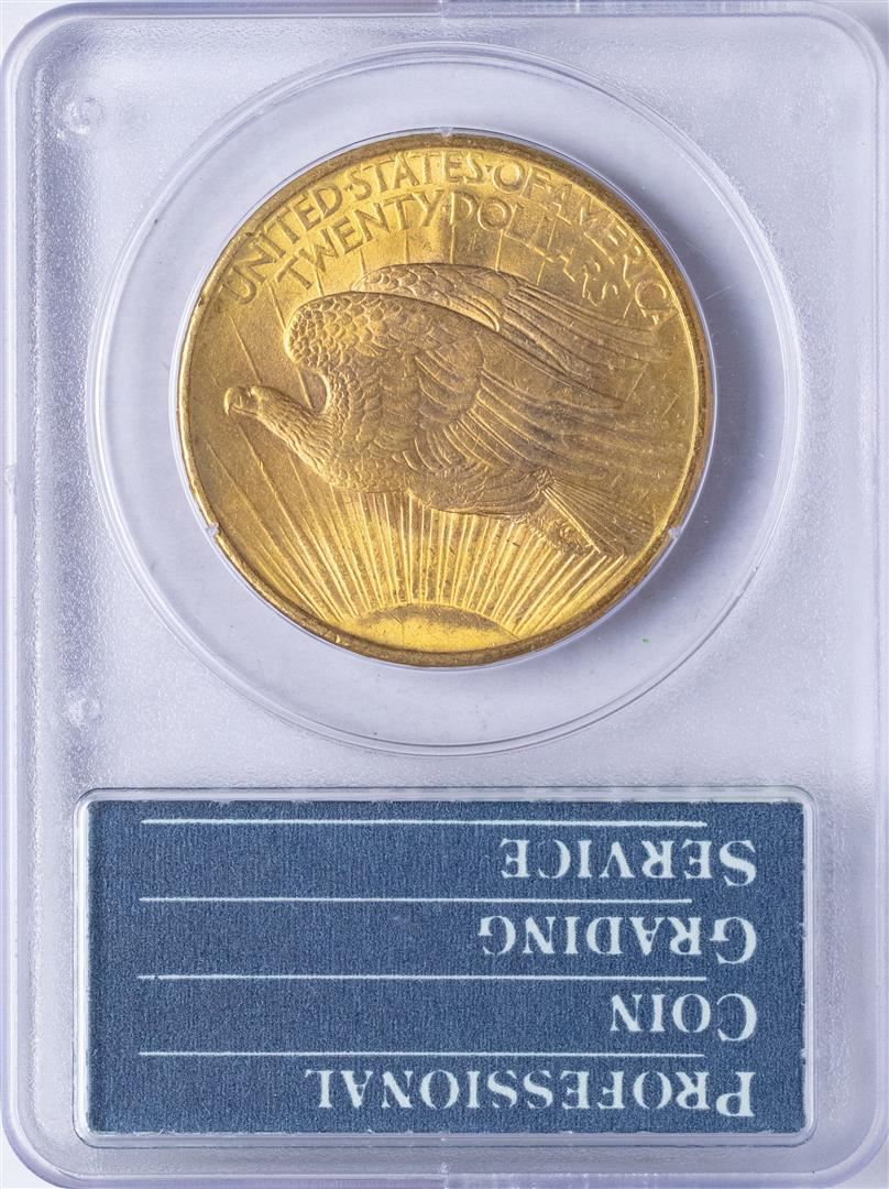 One 1908 $20 St. Gaudens Double Eagle Gold Coin PCGS MS62 Rattler. PCGS Graded.