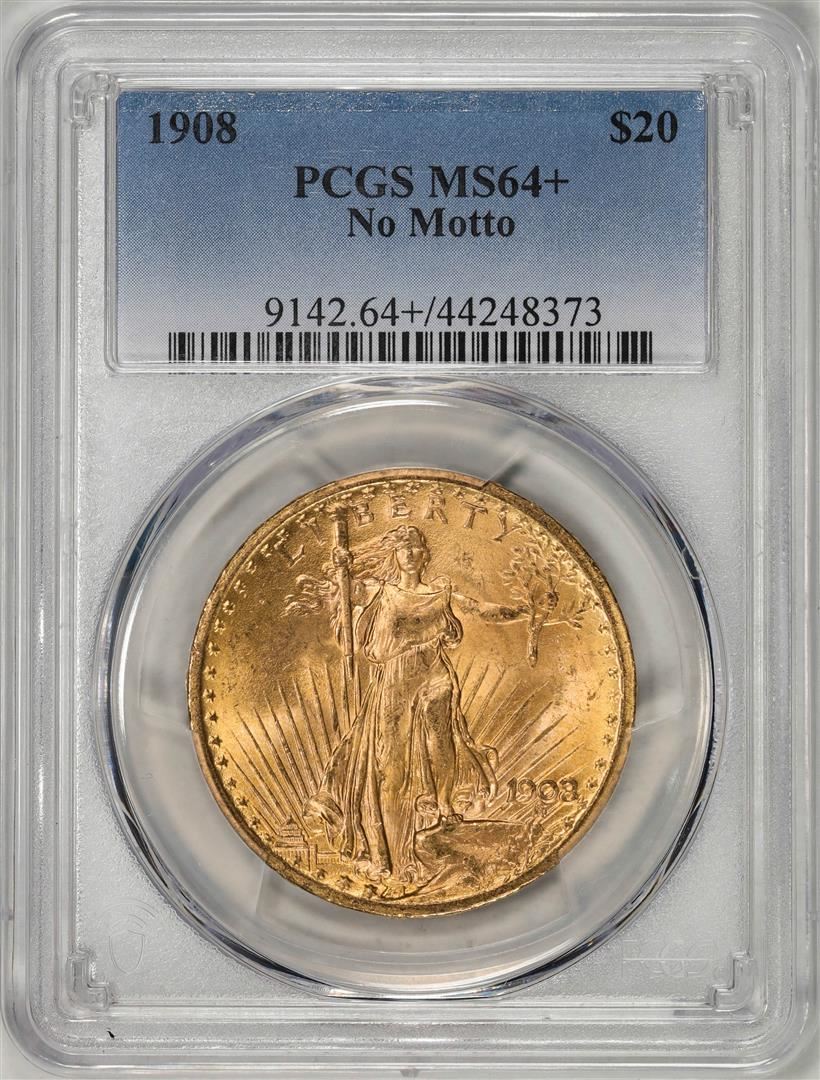 One 1908 $20 St. Gaudens Double Eagle Gold Coin PCGS MS64+. PCGS Graded.
