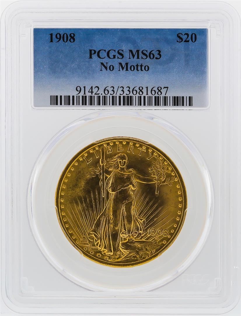 One 1908 $20 St. Gaudens Gold Double Eagle Coin PCGS MS63. PCGS Graded.