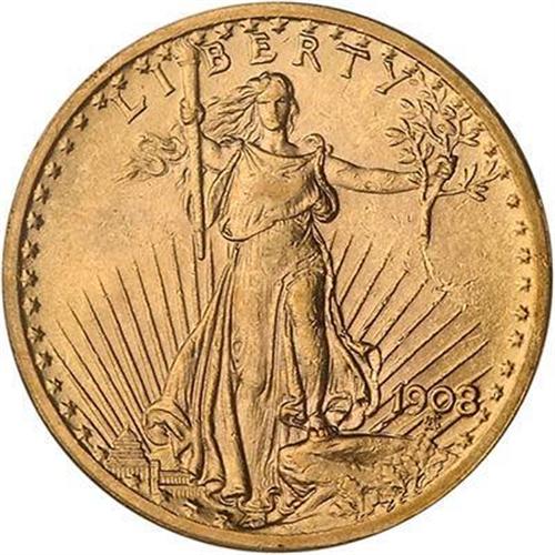 1908 $20 St. Gaudens. No motto PCGS MS63