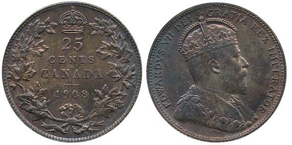 1908 25¢ ICCS MS64. Intense red tones. Popular date.