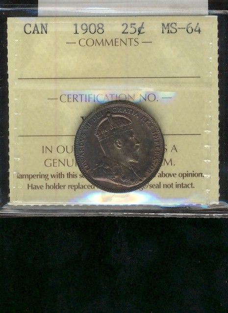 1908 25¢ ICCS MS64. Intense red tones.