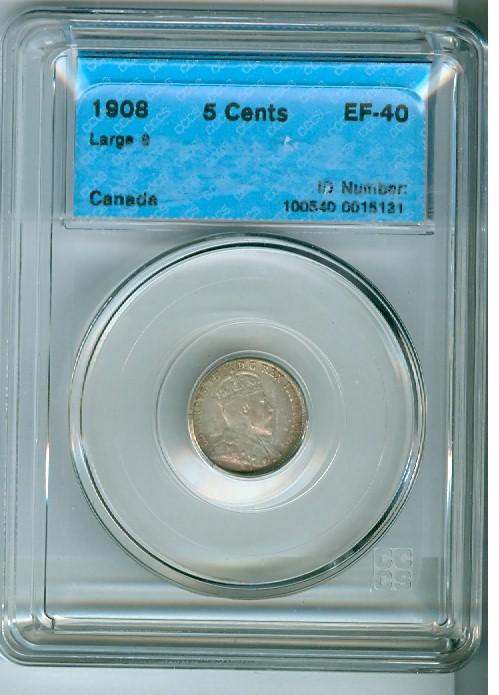 1908 5¢ CCCS EF-40 Large 8 housed in CCCS new hard casing. Key Date.