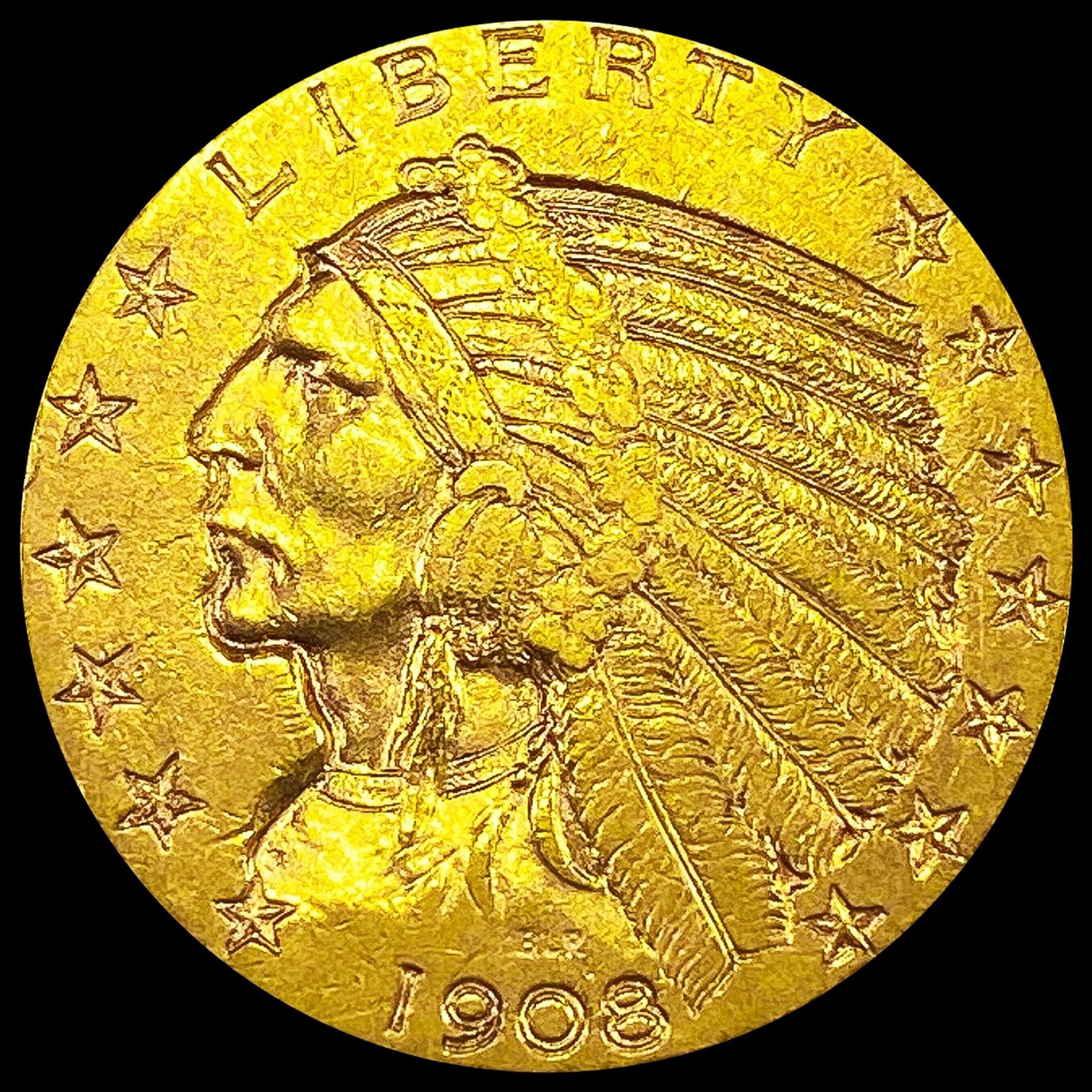 1908 $5 Gold Half Eagle ABOUT UNCIRCULATED