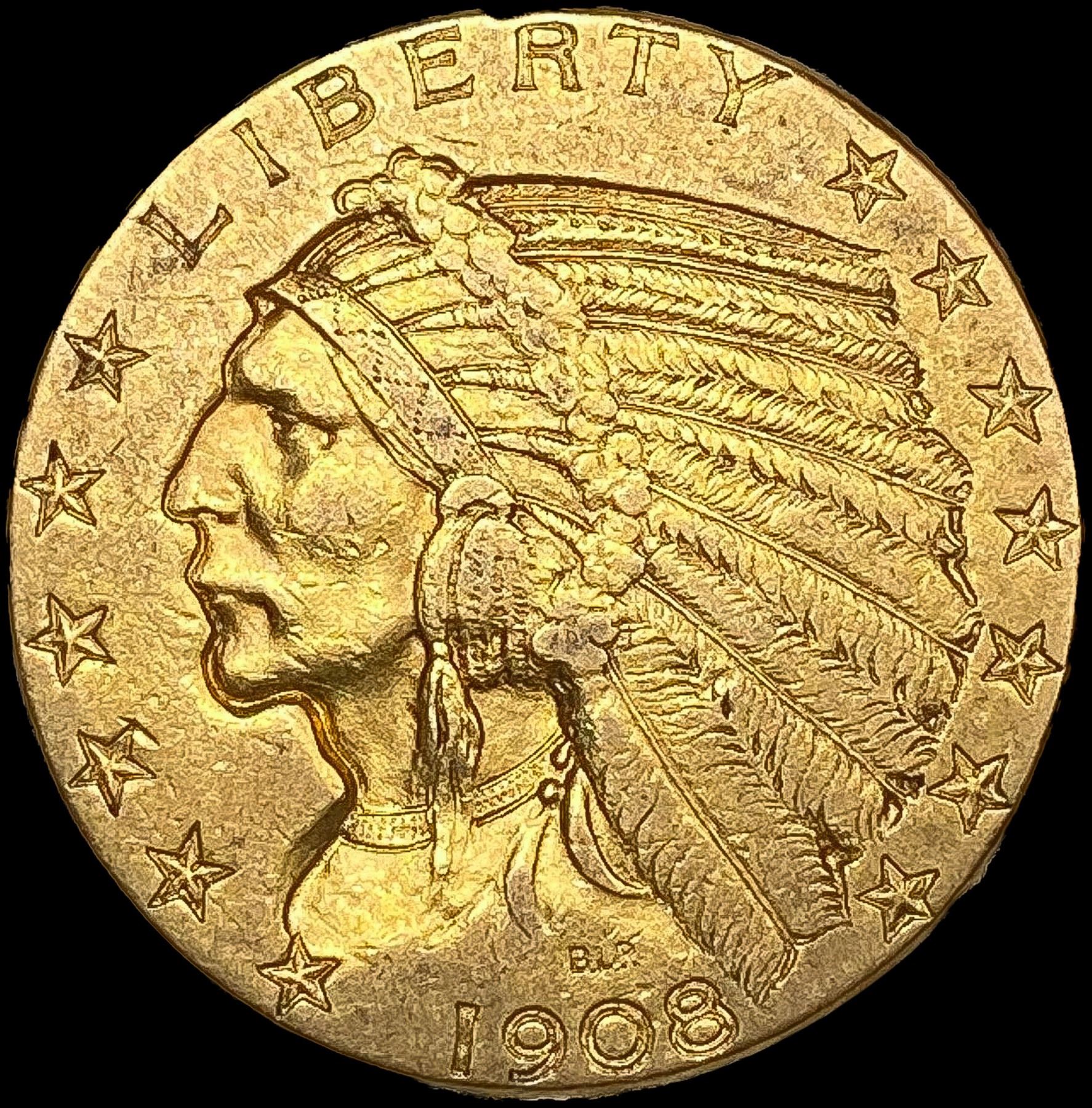 1908 $5 Gold Half Eagle ABOUT UNCIRCULATED
