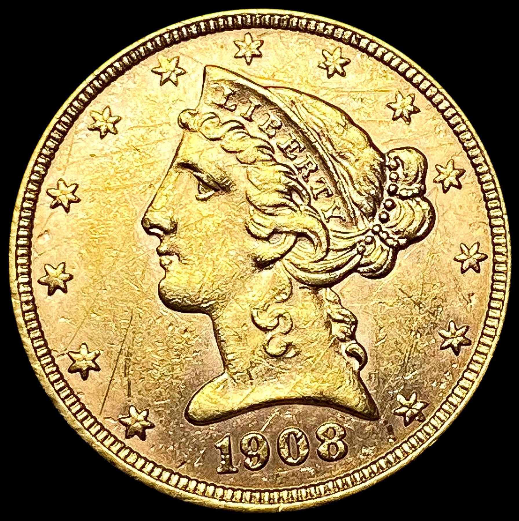 1908 $5 Gold Half Eagle CLOSELY UNCIRCULATED