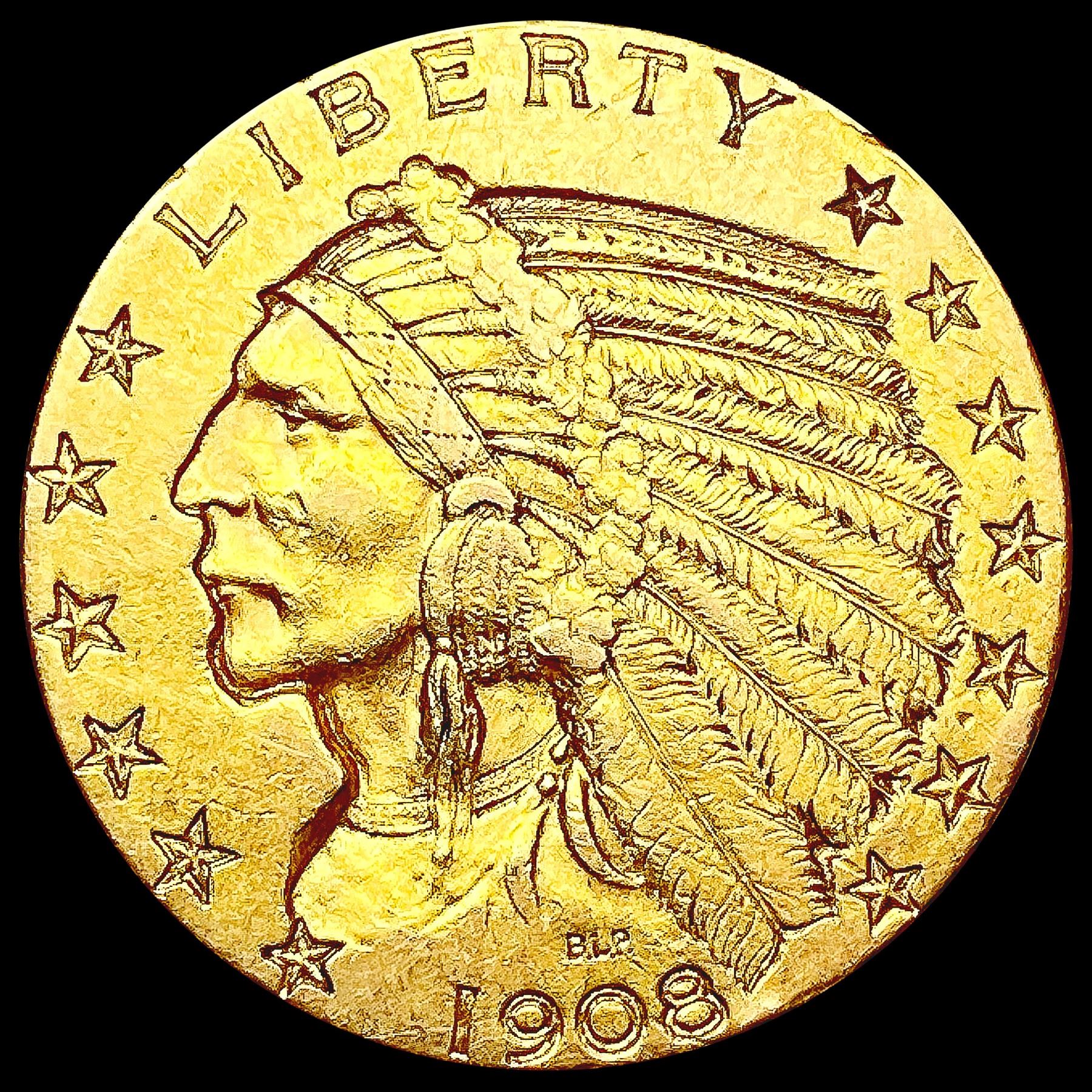 1908 $5 Gold Half Eagle CLOSELY UNCIRCULATED