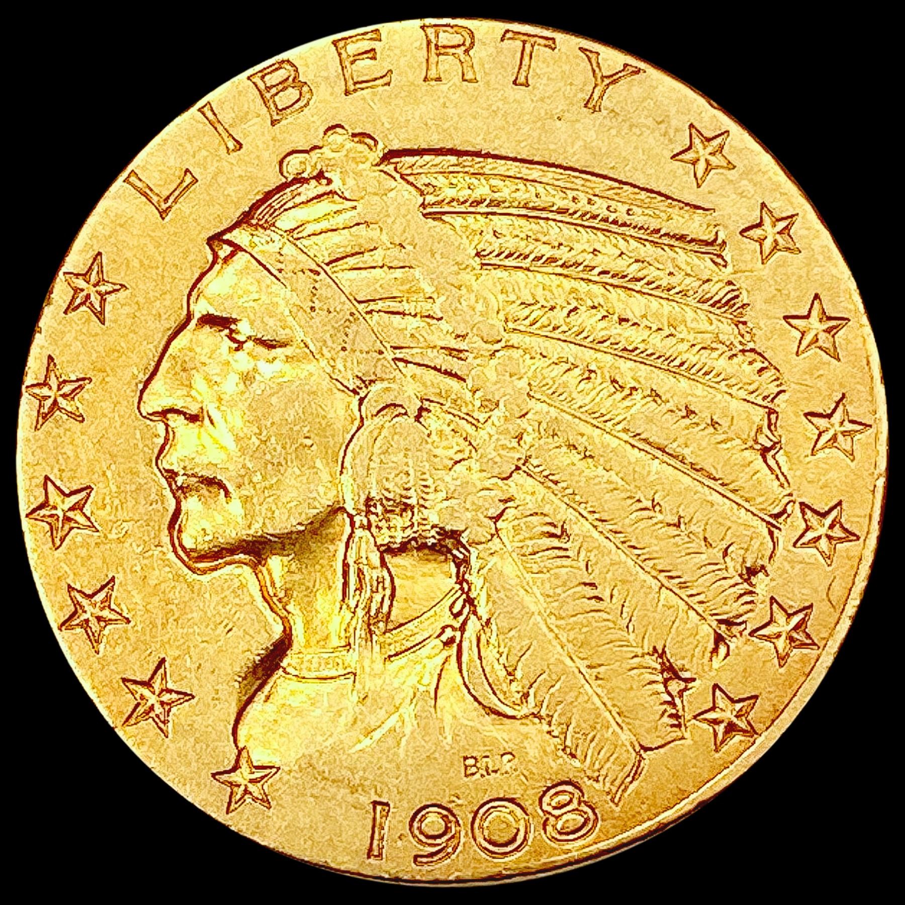 1908 $5 Gold Half Eagle CLOSELY UNCIRCULATED