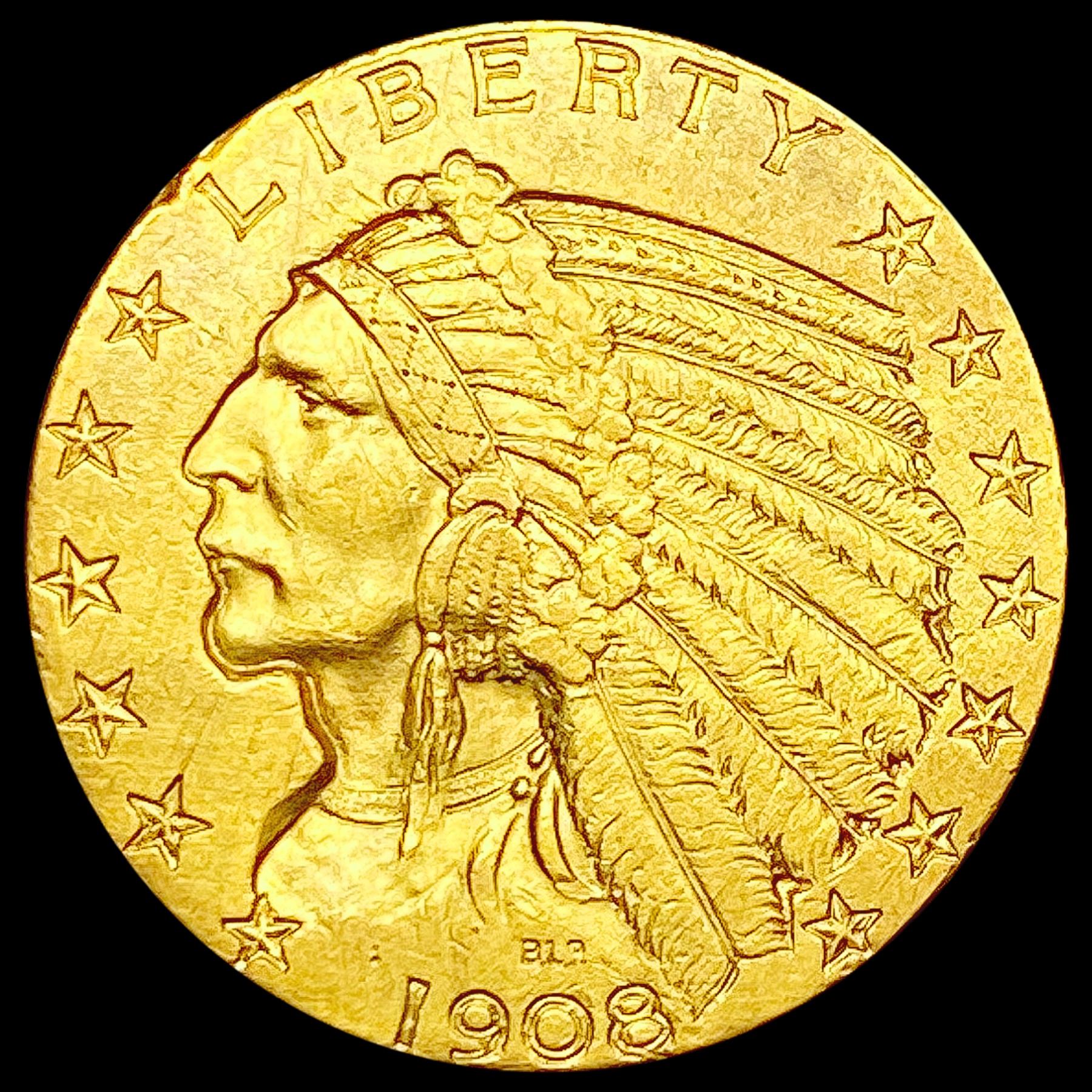 1908 $5 Gold Half Eagle HIGH GRADE