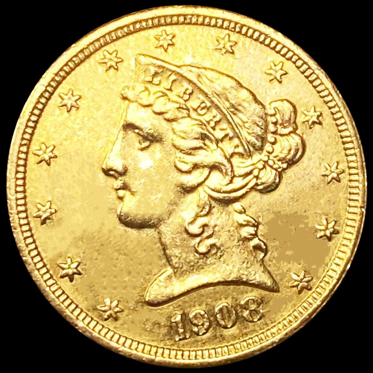 1908 $5 Gold Half Eagle NEARLY UNCIRCULATED