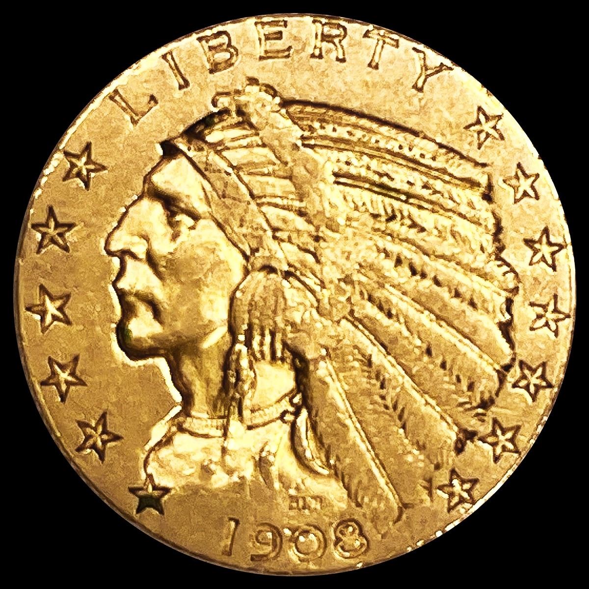 1908 $5 Gold Half Eagle NEARLY UNCIRCULATED